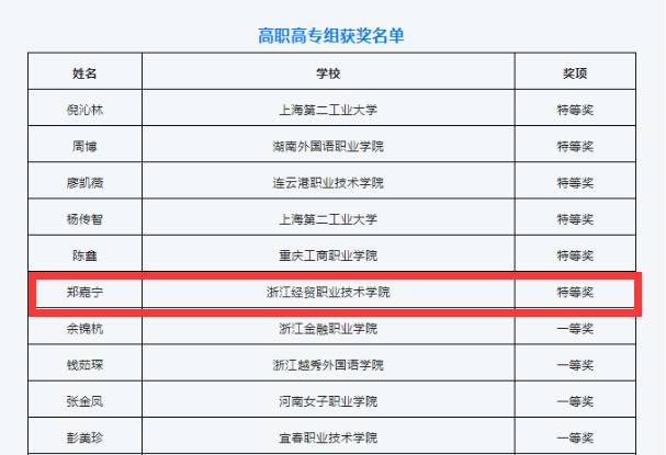第二届“外教社•词达人杯”全国大学生英语词汇能力大赛于5月28日开展了全国决赛,大赛组委会对国赛进行了全程直播。我校国际贸易学院应用英语201班郑嘉宁和国际贸易实务202班冯胜男两位同学代表浙江省参加了本次全国决赛,最终分别以高职高专组第六名获得全国特等奖,第四十四名获得全国二等奖。本次比赛共吸引了全国20个省市自治区130多万位同学报名参赛,郑嘉宁同学以浙江省第一名的好成绩顺利晋级国赛。