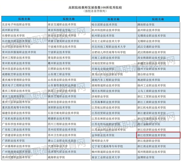 喜报!我校入选全国高职院校教师发展指数优秀院校100强