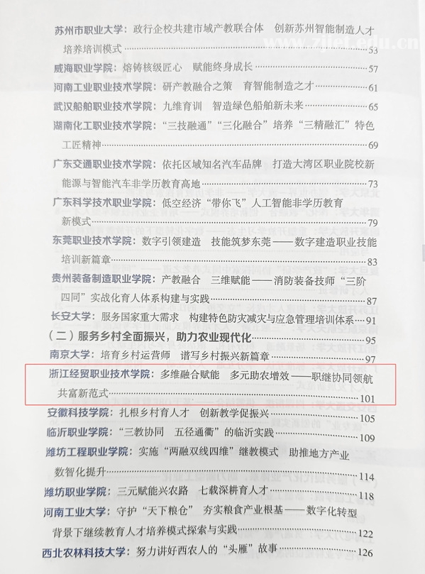 近日,教育部职业教育与成人教育司正式发布了《高校继续教育改革创新之路——学习型社会建设重点任务典型案例汇编》(第二辑),我校申报的《多维融合赋能,多元助农增效—职继协同领航共富新范式》案例成功入选。这不仅是对我校继续教育工作的高度认可,更是充分展现了我校在服务乡村振兴、助力农业现代化方面的示范引领作用。